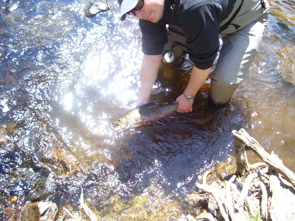 At any rate, I had always caught a lot of small stocker size (up to 12″) trout but had never caught one larger than 14″. It drove me nuts. I could find the fish but not catch them. I was terrible at nymph fishing and I found that browns on the grand didn’t hit streamers the way brookies did on the Credit or smaller Ontario streams. I learned to perfect different dry fly casts like the parachute and still nothing. Then I tried something I had never done before because I was too stubborn. I switched to gaudy sized streamers (size 4 and larger) of the muddler minnow, conehead wooly bugger and perch zonker variety. At least I’d have a chance at bass if I wasn’t going to get a trout. As I wouldn’t be getting to the Grand for a few more weeks, I decided to try my new skills in Algonquin Park. I would never be the same again.