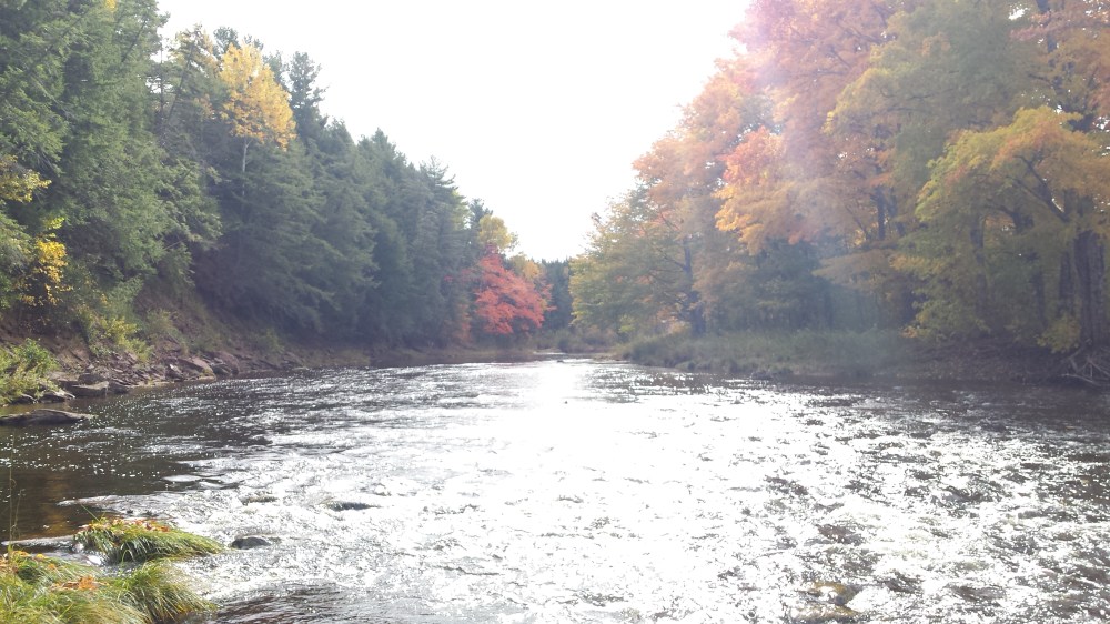 When I arrived at the river, it was a gorgeous fall day just before Canadian Thanksgiving (the second Monday in October). I drove about 90 minutes from home and arrived there mid-morning. There were a few cars parked but I decided to walk in just to see what I’d been waiting for. The water was relatively low considering the time of year. We had yet to receive our customary late-summer or early-fall tropical storm or hurricane with its typical dumping of rain. I walked into the pool that had been passed to me by a friend and realized that the river was very similar to those I had fished at home. Lots of deadfall, shale rock bottom with some river rock in locations. The corner pools had a very prominent seam and it was pretty obvious where the fish held. That being said, the water, while clear, was a lot more tannin coloured than what I was used to. As I walked upstream even further, I watched a gentleman about my age teaching his son how to cast. He was doing an excellent job and working really hard. It was great to see another young person getting involved in the sport.